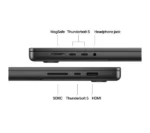 – The 16-inch MacBook Pro features three Thunderbolt 5 ports, a MagSafe 3 charging port, SDXC card slot, HDMI port and headphone jack. And it supports up to two external displays with M4 Pro, or up to four with M4 Max