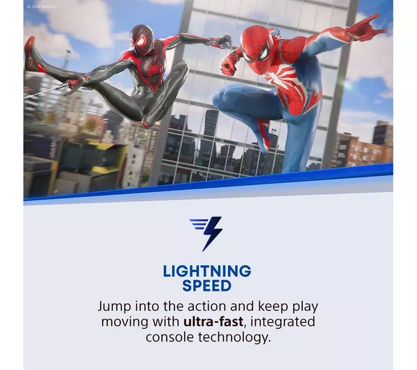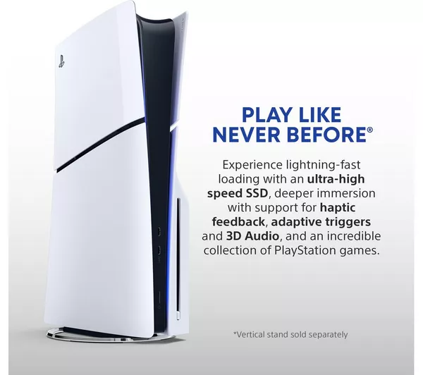 The new PS5 is slimmed down, but it’s still just as fast. It’s 24% lighter and 30% smaller than the original – so now it actually might fit in that tight spot under the telly. And even though it’s little, it still packs a punch. Jump in with shiny 4K Ultra HD graphics at up to 120 fps for silky-smooth life-like action. There’s a chunkier 1 TB SSD too, which gives you loads of space for your favourite titles. An extra USB-C port lets you charge a couple of controllers at once, so you’re ready for some couch co-op.