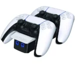 Keep your PS5 controllers fully charged and on display with the Venom VS5001 PlayStation 5 Twin Docking Station. Designed to match the style of the PlayStation 5, it fits in seamlessly with your gaming setup.