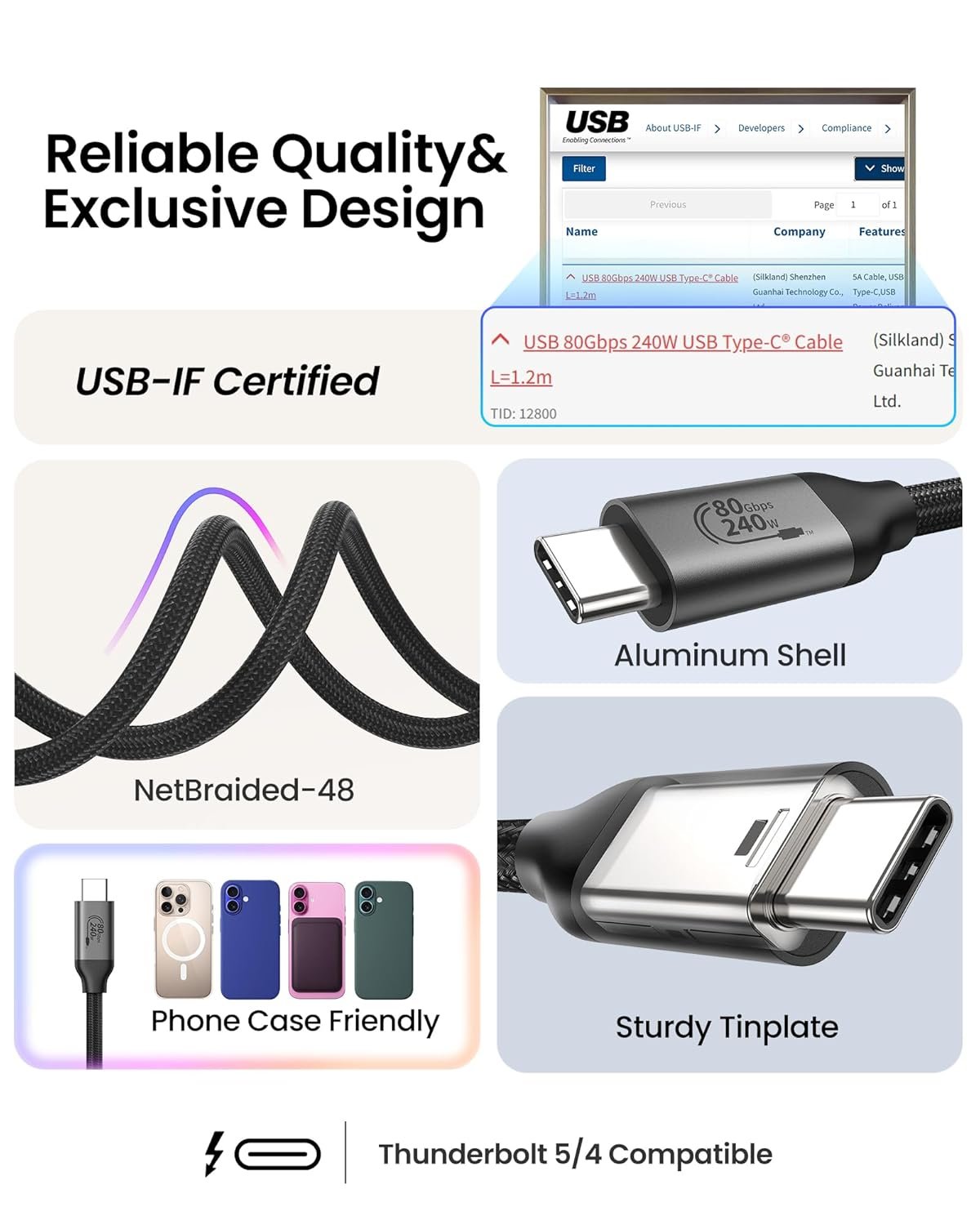 Speed is the core foundation of this hardware. Because the Silkland cable delivers 80Gbps bi-directional data, you can move a 6GB file in just one second. This efficiency drastically reduces wait times during heavy data backups. Since it is fully USB-IF Certified, you can trust the stability and integrity of every byte transferred.
